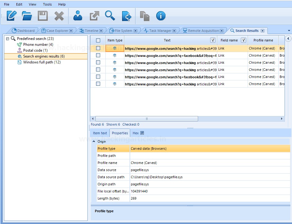 Tương tự, bạn có thể thực hiện điều tra pháp y cho hiberfil. Xuất hiberfil.sys (lưu trữ dữ liệu trong khi hệ thống cửa sổ đang ở chế độ Hibernate) bằng cách sử dụng FTK tại C: /hiberfile.sys và phân tích thêm bằng Belkasoft Evidence Center.