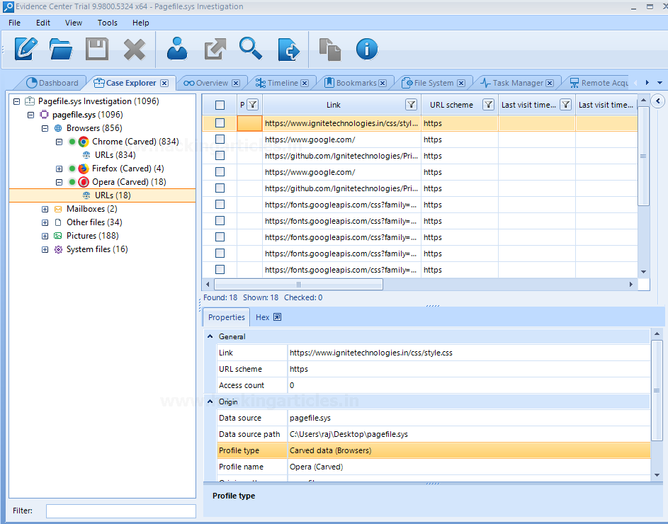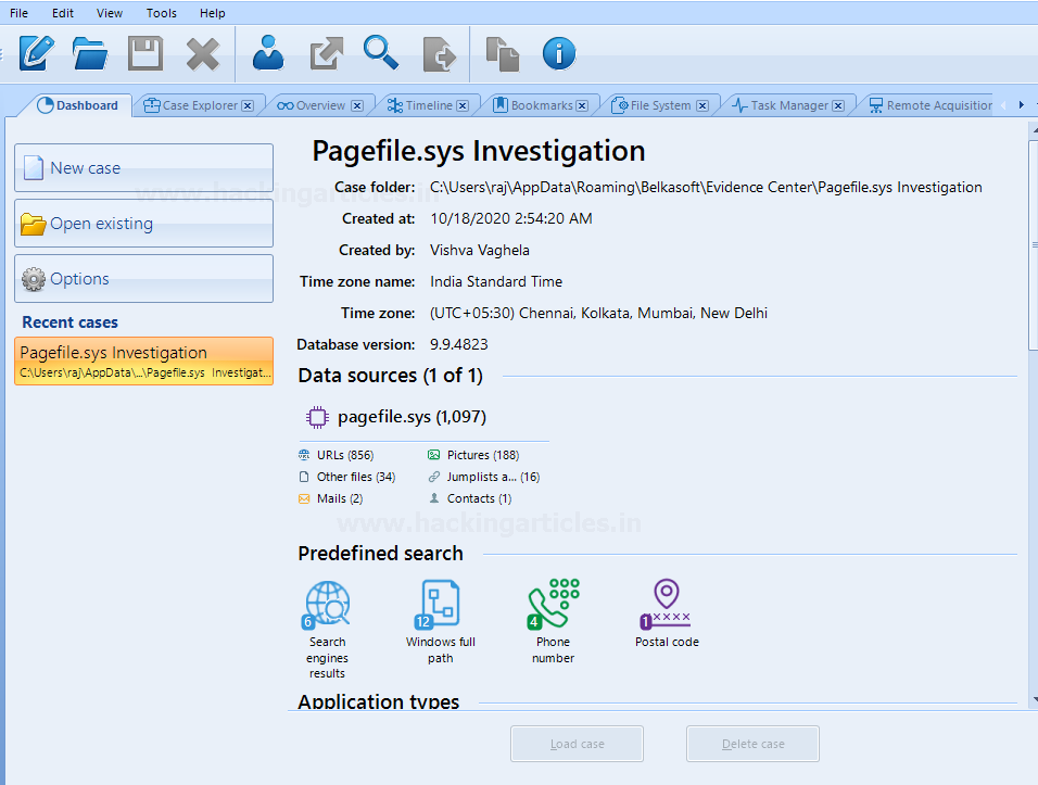 Bây giờ để phân tích tệp đã khắc, chúng ta sẽ sử dụng công cụ Trung tâm Bằng chứng Belkasoft để phân tích pagefile.sys. Trung tâm Bằng chứng Belkasoft là một công cụ pháp y số tất cả trong một để thu thập phân tích và khắc bằng chứng kỹ thuật số. Bạn có thể tải xuống bản dùng thử miễn phí của công cụ từ đây .