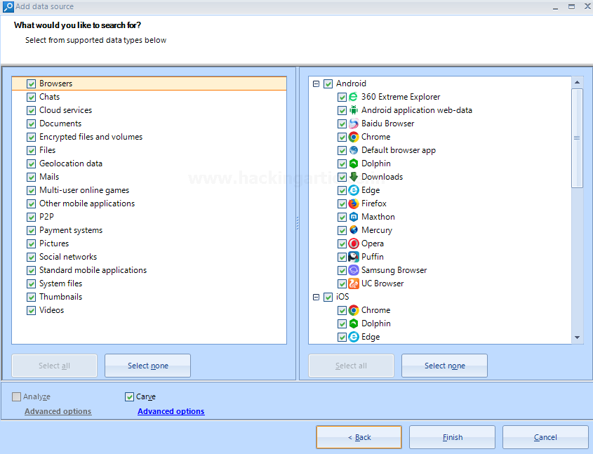 Chọn kiểu dữ liệu mong muốn mà bạn muốn tìm kiếm. Có rất nhiều kiểu dữ liệu được hỗ trợ bởi công cụ. Nhấp vào kết thúc sau đó.