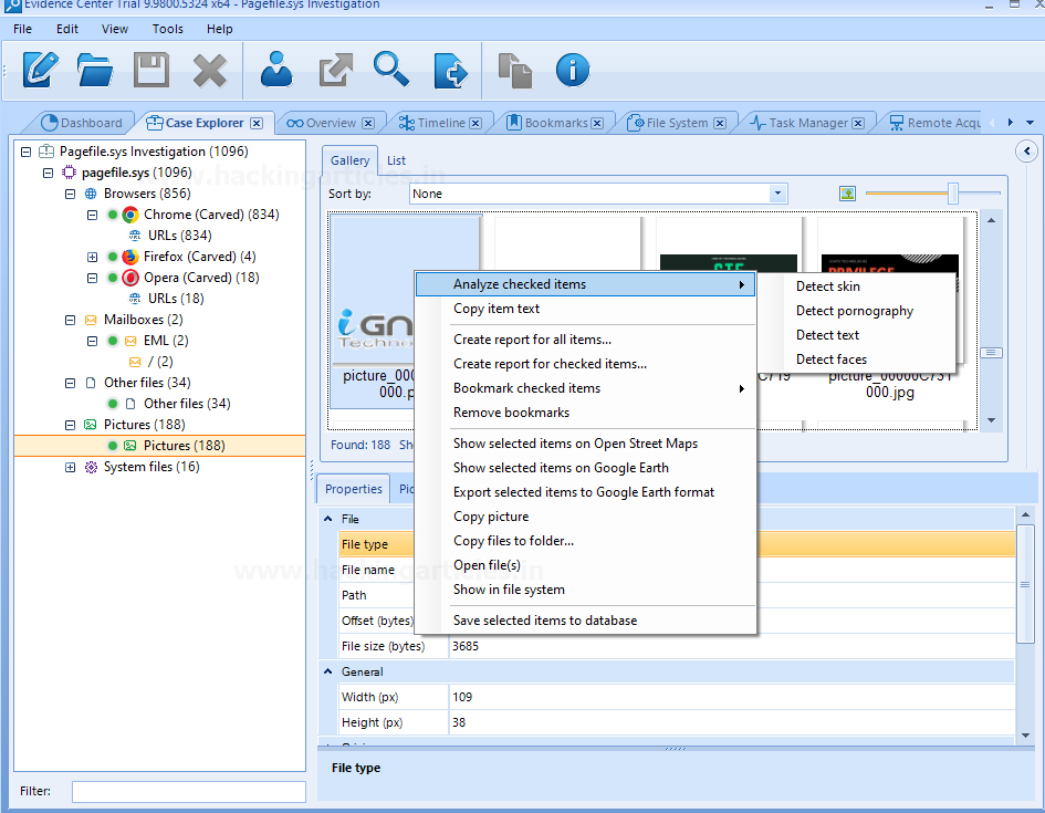 Tính năng tuyệt vời của trung tâm bằng chứng belkasoft là nó cho phép bạn chỉ cần ngay trên hình ảnh và phân tích nó cho các khía cạnh khác nhau như kiểm tra da, phát hiện nội dung khiêu dâm từ hình ảnh, phát hiện văn bản và cả khuôn mặt. Tất cả những khía cạnh này đều hữu ích trong quá trình phân tích trực tiếp.