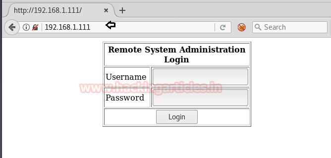 Vì cổng 80 được mở nên chúng tôi đã khám phá IP mục tiêu trong trình duyệt web và nhận thấy trang đăng nhập sau.