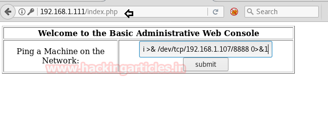 Tuyệt quá!!! Đã đăng nhập thành công vào Bảng điều khiển web quản trị cơ bản, nơi các bạn tìm thấy một trường văn bản trống cho người dùng nhập. Bất cứ khi nào tôi thấy loại kịch bản như vậy, tôi cố gắng kiểm tra nó để chống lại các lỗ hổng tiêm lệnh (command injection)