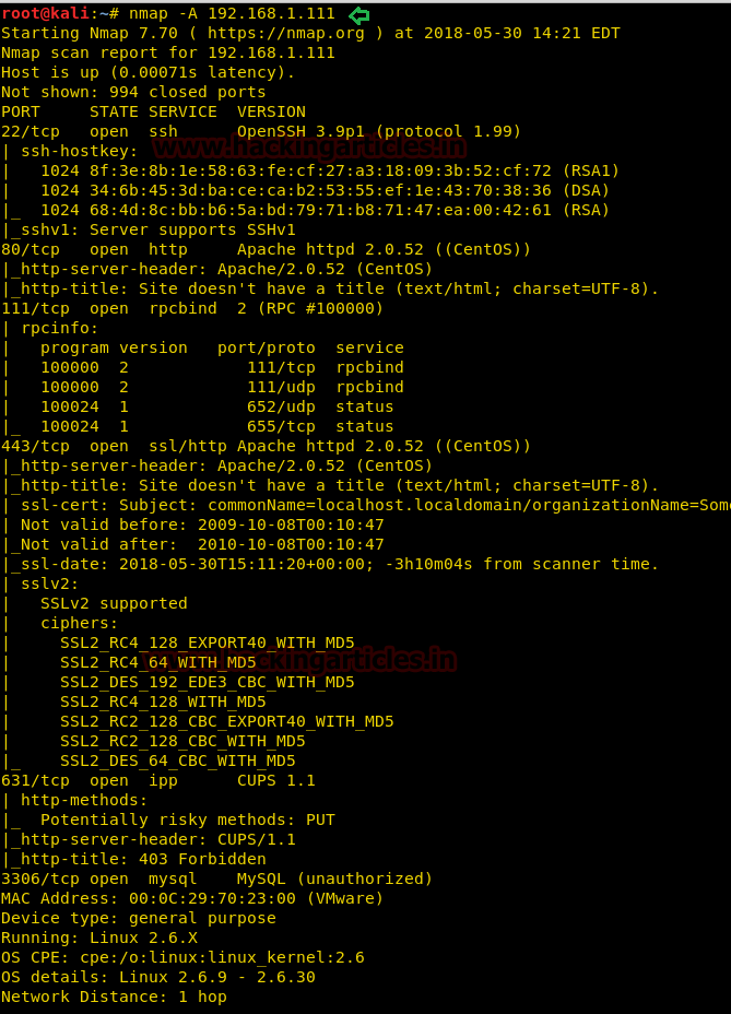 Kết quả ta thấy 192.168.1.111 là máy ảo Vmware. Vì vậy, chúng tôi nhắm mục tiêu tại 192.168.1.111 cho phép liệt kê và quét các cổng và giao thức đang mở. Với sự trợ giúp của tính năng quét tích cực nmap, chúng tôi đã quan sát thấy một số cổng đang mở và dịch vụ đang chạy trên đó. Hãy tham khảo bài hack Kioptrx level 1 để nắm sơ bộ một số hướng tấn công …