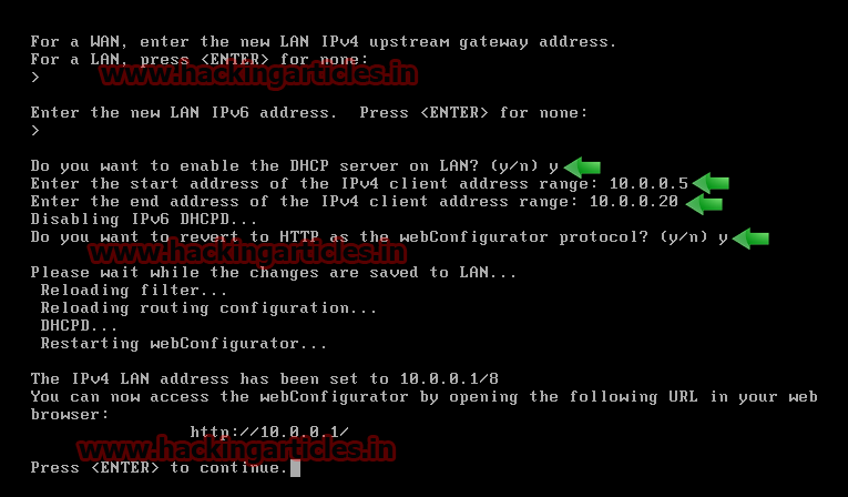 Và như thế này, địa chỉ IP LAN của bạn đã được thiết lập. Bây giờ, nhấn enter để tiếp tục.