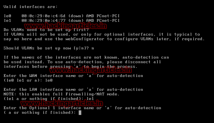 Bây giờ nó sẽ yêu cầu bạn đặt tên cho giao diện WAN và LAN. Đặt tên le0 cho WAN và le1 cho LAN. Sau đó, chỉ cần nhấn enter khi nó yêu cầu bạn đặt tên cho giao diện tùy chọn.