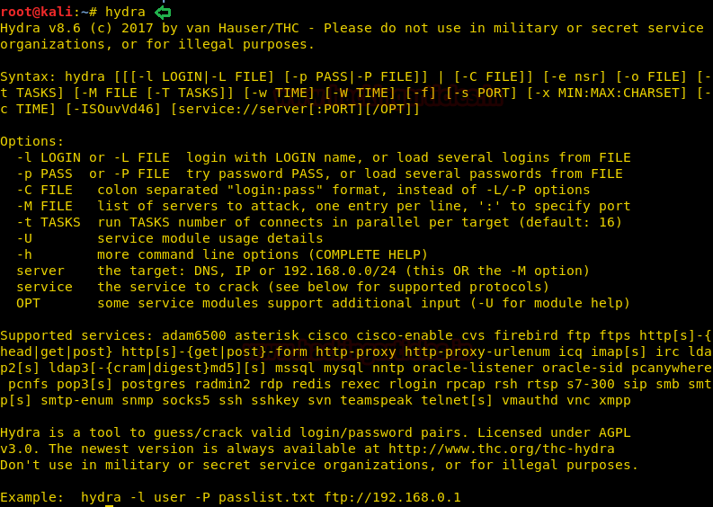 Hydra là một công cụ rất có tác động và cũng khá dễ sử dụng để thực hiện một cuộc tấn công vũ phu trên bất kỳ giao thức nào.