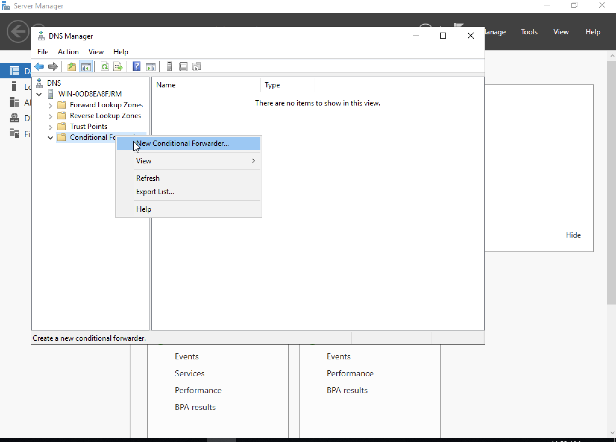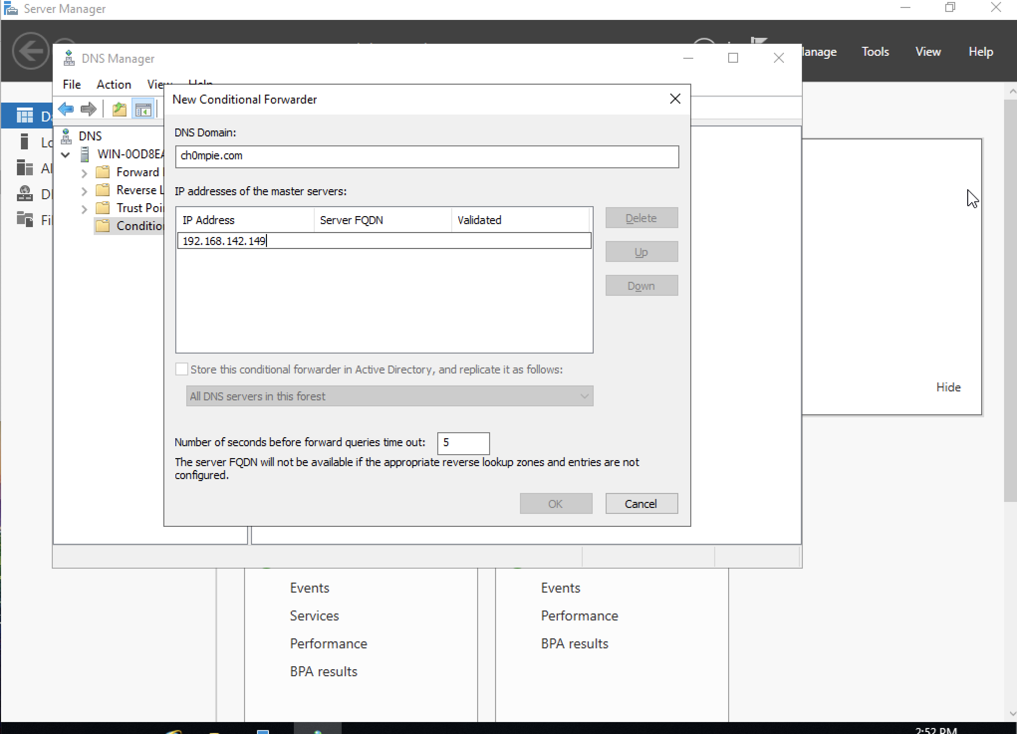 Kẻ tấn công sẽ thiết lập một miền độc hại có bản ghi NS trỏ đến máy chủ của hắn. Đối với PoC này, chúng ta chỉ cần cấu hình một trình chuyển tiếp có điều kiện New Conditional Forwarder như hình trên máy nạn nhân để chuyển tiếp các yêu cầu “miền xấu” tới máy tấn công.
