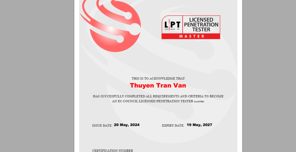 Đặc biệt, khóa học còn cung cấp nội dung LPT , chứng nhận đỉnh cao nhất về Pentester của EC Council trên toàn thế giới giúp cho các học viên có khả năng thi đạt 2 chứng chỉ CPENT và LPT. Chương trình được phụ trách bởi Instructor Vinh Nguyen Tran Tuong , CEI của EC- Council đoạt giải xuất sắc Top 5 năm 2022 (khu vực APAC ) và năm 2022. Là người duy nhất ở VN đạt giải thường trên trong 2 năm liên tiếp trong tổng số hàng nghìn CEI Khu vực Châu Á Thái Bình Dương.