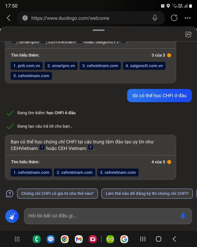 Bonus : Hỗ trợ luyện thi chứng chỉ quốc tế miễn phí cho các bạn đăng kí kèm voucher CHFI v11