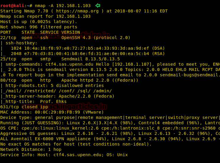 Kết quả cho các Hacker Mũ Xám thấy rằng các cổng 80 (http), 25 (SMTP) và 22 (SSH) đã được mở