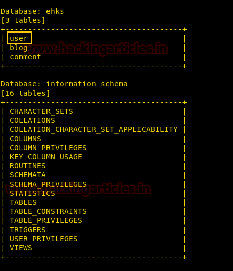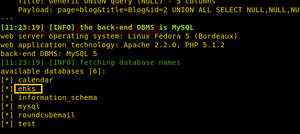 Sau khi hoàn tất thành công quá trình quét SQLMAP, các Hacker Mũ Xám chúng ta đã nhận được danh sách tất cả các cơ sở dữ liệu !! Bây giờ chúng tôi đã thử sử dụng cơ sở dữ liệu ehks , với lệnh sau để trích xuất các chi tiết khác