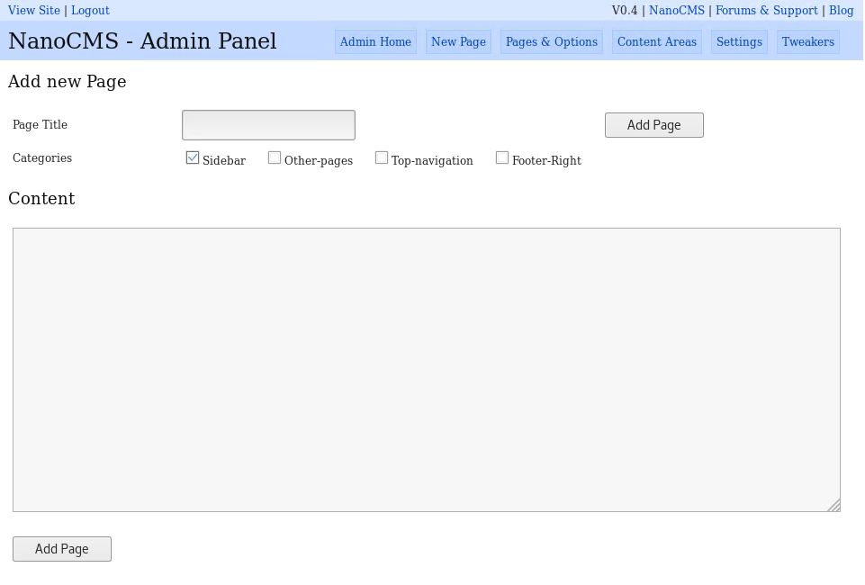 Copy the code from <?php to die() as shown above . Open the NanoCMS Admin panel of the website, navigate to the New Page option and paste the reverse PHP shell in the Content section. Input any name in the Title and click on the Add Page.
