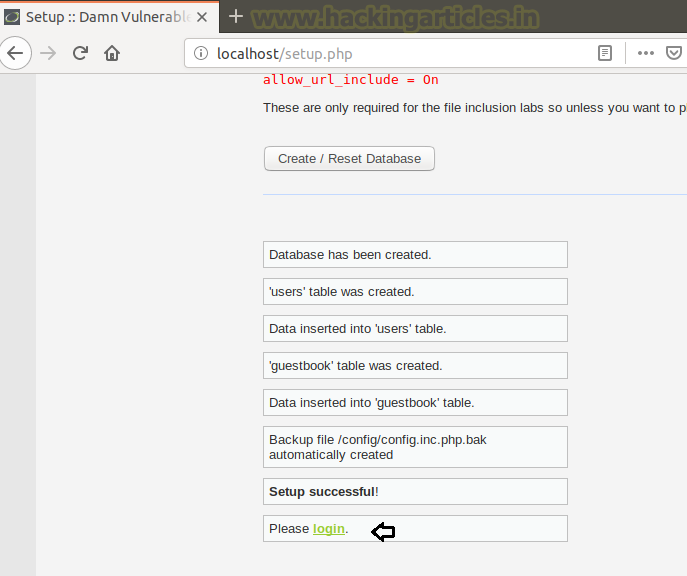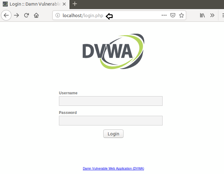 Tốt! Chúng tôi đã cấu hình thành công phòng thí nghiệm dvwa trong ubuntu vì chúng tôi có thể thấy rằng chúng tôi được chào đón bởi trang đăng nhập.