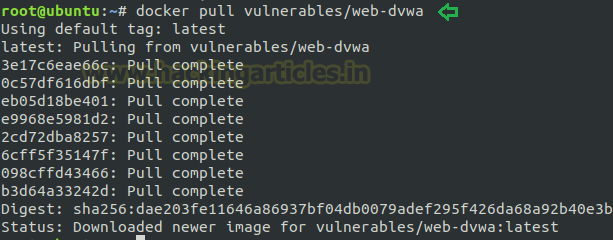 Tương tự, chúng ta có thể chạy mutillidae bằng docker mà không mất nhiều thời gian trong việc cấu hình thủ công. Lặp lại bước tương tự như đã làm trước đó, đầu tiên kéo gói và sau đó sử dụng docker để bắt đầu mutillidae qua một cổng cụ thể.
