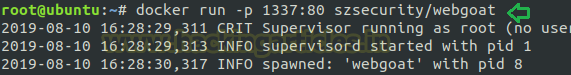 sau đó sử dụng docker để khởi động WebGoat qua một cổng cụ thể.