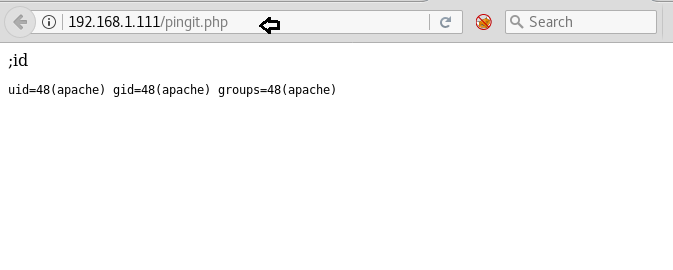 Kết quả là xuất hiện UID và GID của apache và đây chính là bằng chứng cho thấy ứng dụng này dễ bị tiêm lệnh.