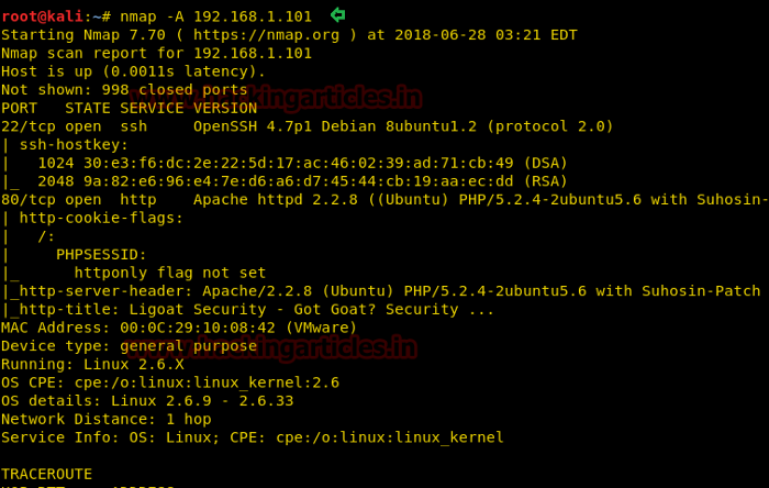 Mục tiêu của chúng ta là 192.168.1.101 Bây giờ hãy quét mục tiêu bằng nmap: