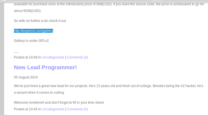 Duyệt đến trang web http://kioptrix3.com/gallery và điều hướng trên một vài mục