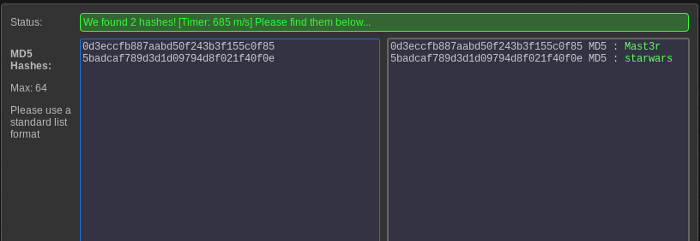 A hi ha ! Chúng ta có mật khẩu là starwars và Mast3r !