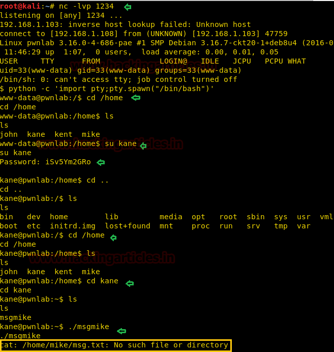 Như bạn có thể thấy trong hình bên dưới, có một tệp trong người dùng kane có tên là msgmike. Hãy thử chạy nó , gõ: