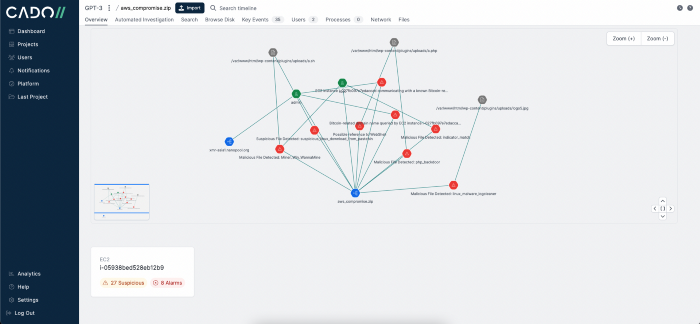 Đầu tiên, chúng tôi đã xử lý một hệ thống EC2 bị xâm nhập đang chạy trong AWS bằng Nền tảng Cado: