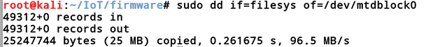 Sau khi hoàn tất, chúng tôi sẽ chỉ cần sao chép hệ thống tệp từ tệp đã tạo (filesys) sang mtdblock0 .