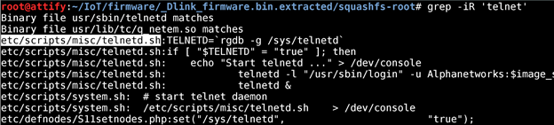 Nếu chúng ta grep cho telnet, chúng ta có thể thấy rằng có một tệp nằm ở /etc/scripts/misc/telnetd.sh.