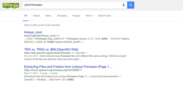 Như chúng ta có thể thấy từ kết xuất hex, mặc dù hầu hết thông tin không có ý nghĩa, nhưng có hai chuỗi nổi bật – u2nd và hdr0. Chỉ cần tìm kiếm nhanh trên Google, chúng tôi biết rằng điều này có liên quan đến sản phẩm Linksys và thực tế đúng như vậy.