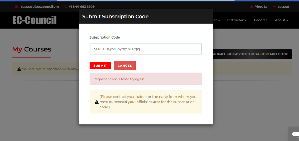 Sau khi đăng kí Exam Voucher các bạn sẽ nhận được code truy cập Aspen Dashboard cách nhập code khá đơn giãn, dễ dàng. nhưng thông báo của hệ thống đôi khi gây hiểu nhầm ví dụ báo lỗi” như hình sau :