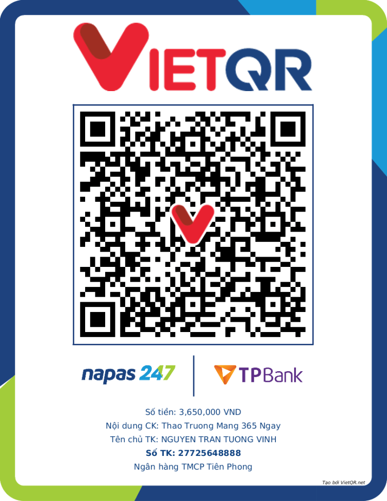 Để đăng kí Thao Trường Mạng CompTIA CertMaster Lab Data+ (DA0-001) hãy chọn gói tương ứng và quét mã QR tiến hành thanh toán, sau đó gởi hình Ủy Nhiệm Chi hay hình ảnh Chuyển Khoản về Zalo 0948432780 để nhận tài khoản hoặc messenger Thao Trường Mạng. Thời gian xử lý chậm nhất từ 8 – 24 giờ làm việc. Nhanh nhất trong vòng 60 phút.