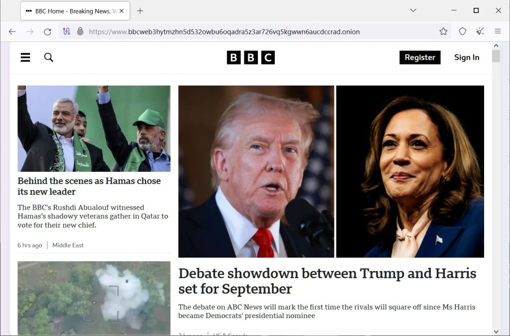 BBC – Đài truyền hình Anh quốc BBC trên Tor. https://www.bbcnewsd73hkzno2ini43t4gblxvycyac5aw4gnv7t2rccijh7745uqd.onion/