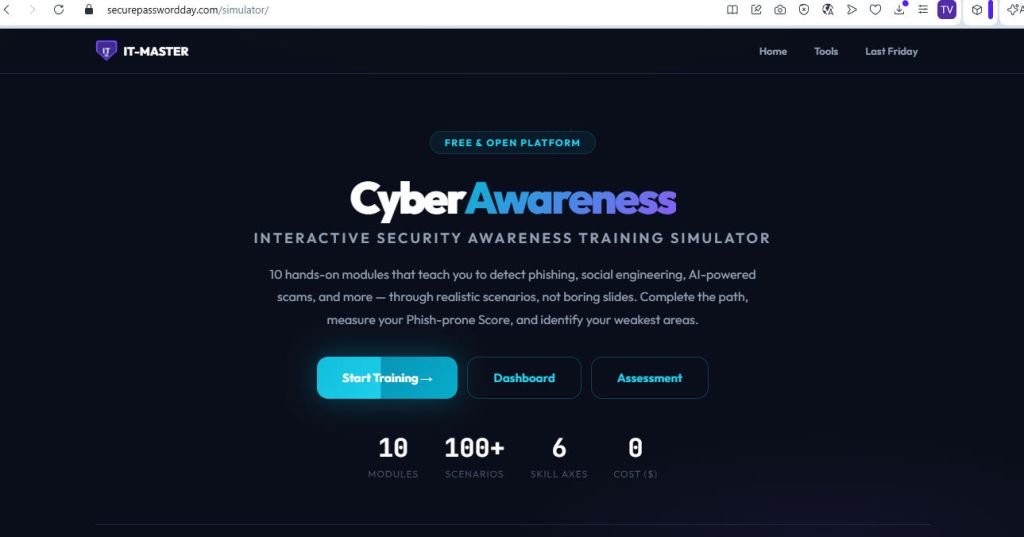 | 7–10 | Chơi một bài tập nhận thức — giữ cho phản xạ luôn sắc bén | CyberAwareness Simulator |